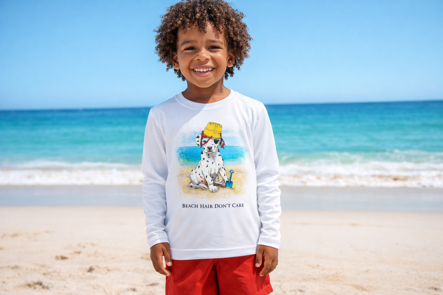 Beach Hair Don’t Care Kids UPF 50 Long Sleeve T-Shirt