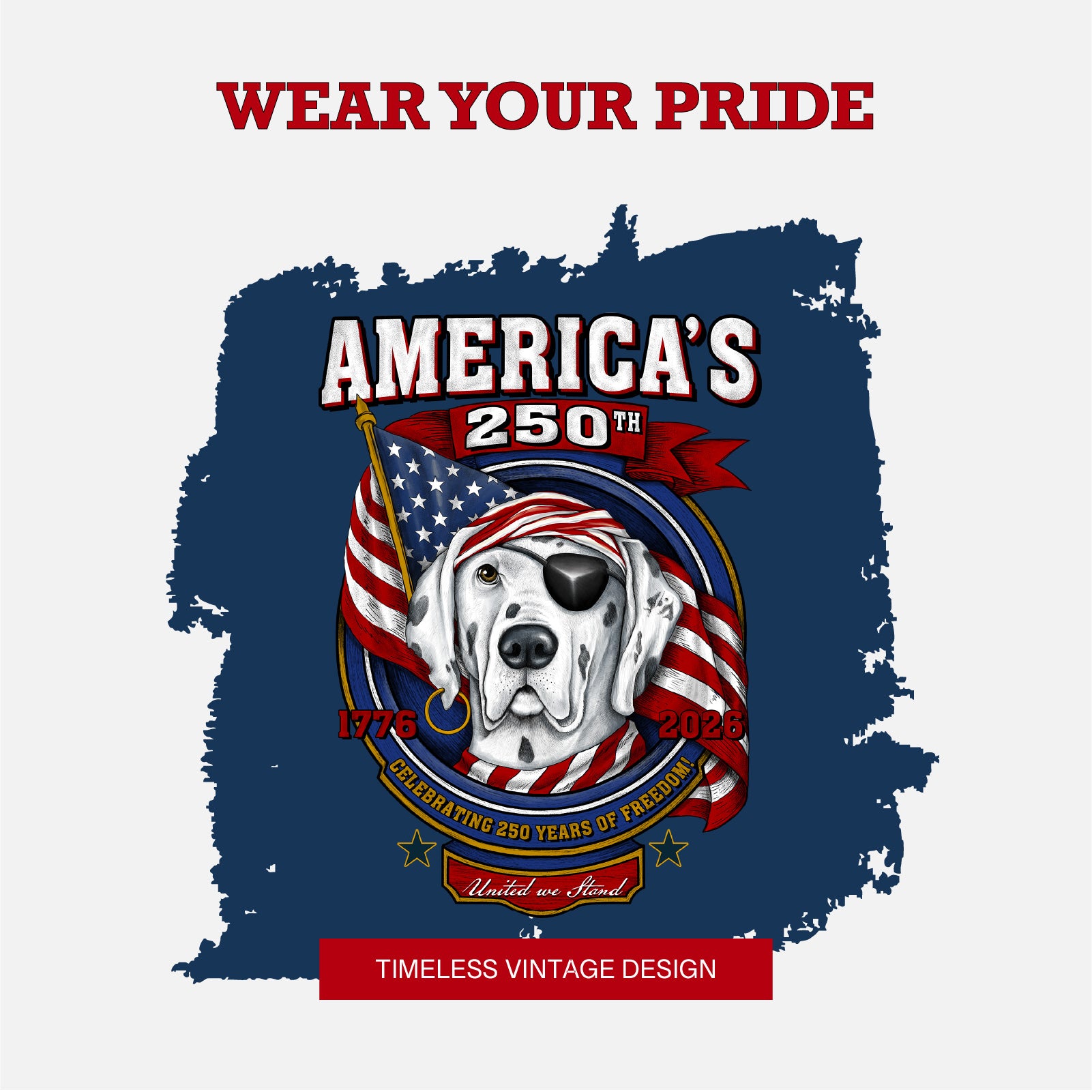 Bold screen-printed Freedom Badge graphic with vintage patriotic detail